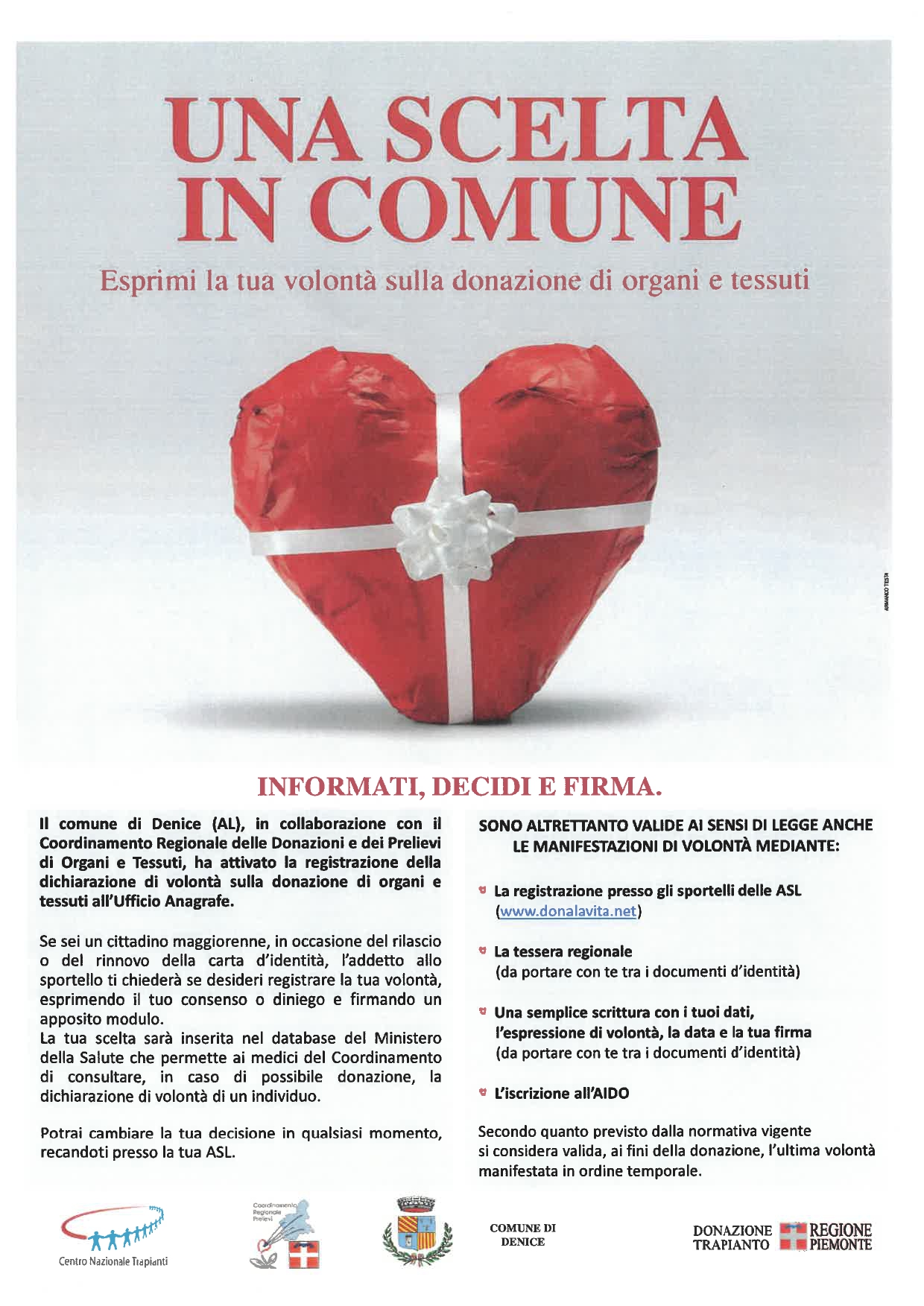ESPRIMI LA TUA VOLONTA' SULLA DONAZIONE DI ORGANI E TESSUTI INFORMATI, DECIDI, FIRMA