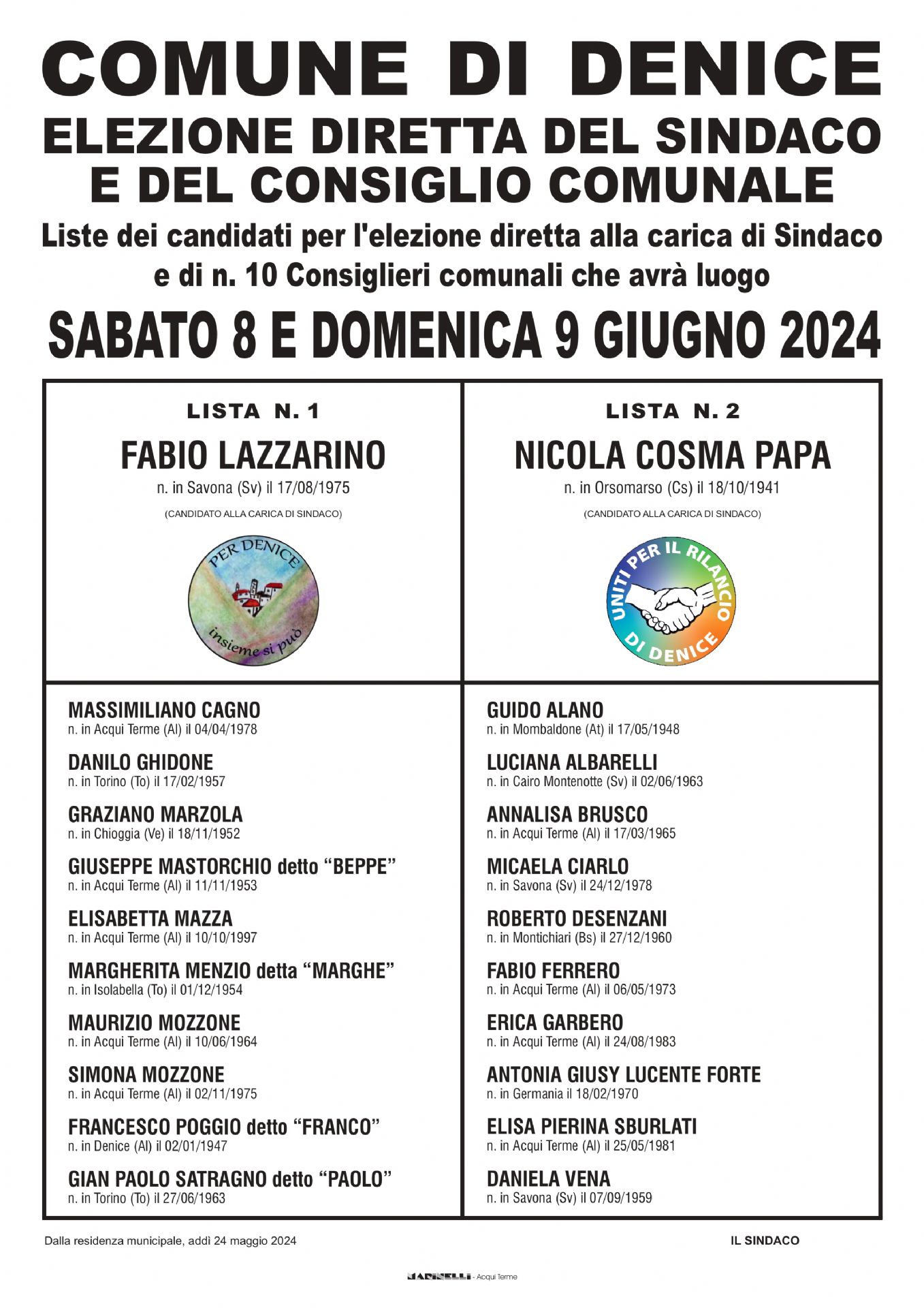 Liste dei candidati per l'elezione diretta alla carica di Sindaco